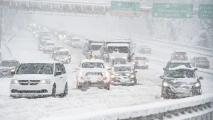 “Se anticipan períodos de fuertes nevadas en la parte alta de los Grandes Lagos a finales del domingo y hasta el lunes. La nieve intensificada por los lagos a lo largo de la Península Superior de Michigan acumulará más de 30 cm de nieve”, advirtió el NWS en una publicación en X.