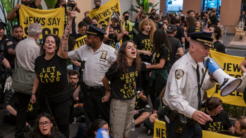 Liderados por el grupo pacifista Jewish Voice for Peace, los cientos de manifestantes intentaron inicialmente realizar una sentada en las oficinas de Manhattan de los dos legisladores demócratas, a quienes acusaban de apoyar la intensificación de los ataques israelíes en el Líbano y la guerra entre Estados Unidos e Israel contra Irán.