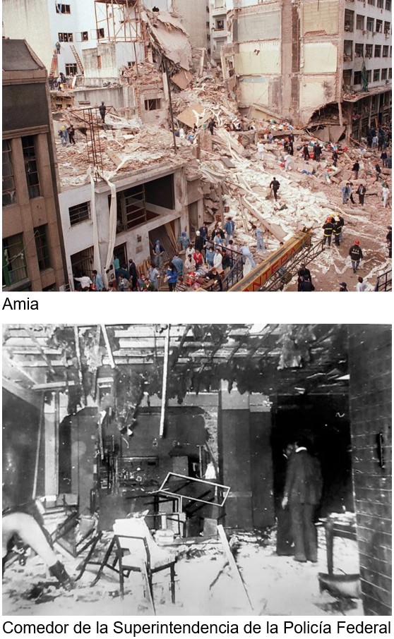 El 18 de Julio de 1994, un coche bomba fue detonado en la Asociación Mutual Israelita (AMIA), siendo responsables de hacer colocar el explosivo un miembro del operativo Libanes grupo terrorista Hezbollah y siete funcionarios Iraníes. Se trató del mayor atentado terrorista de la historia argentina, con un saldo de 85 muertos y 300 heridos.